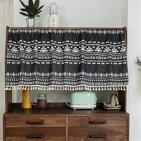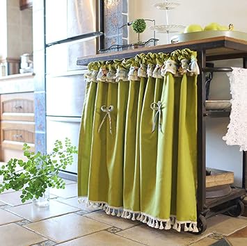 Amazon De Typ Mall Rustikaler Stil Der Halber Vorhang Kuchenschrank Baumwollgemischtes Material Dekoration Und Isolierung Kurzer Vorhang Mit Fransen Fur Kuche Wasche Bucherregal Grun 146x80cm