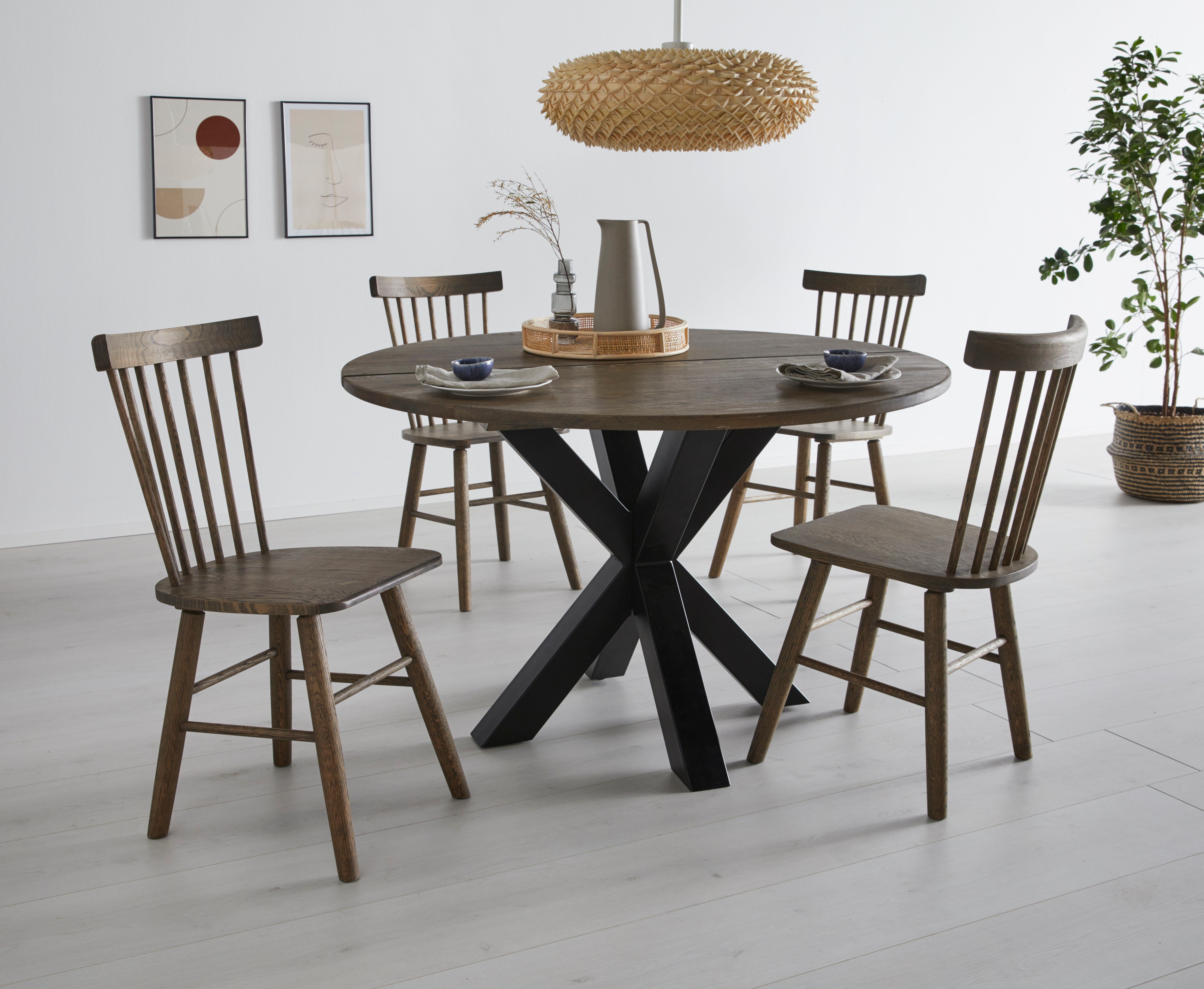 Otto Products Esstisch Lennard Aus Massiver Geolter Wildeiche Mit Veganem Und Zertifizierten Bio Ol Behandelt Runde Tischplatte Mit Sternformigem Metallgestell Bei Otto